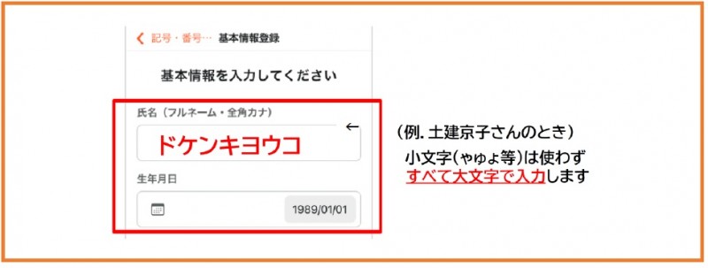 全角カナ氏名(スペースなし)を入力後、生年月日を選択します