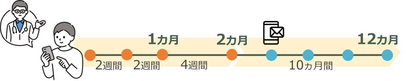 2カ月間の診察・薬の服用と10カ月間の継続サポート(フォローアップメール)を行います。